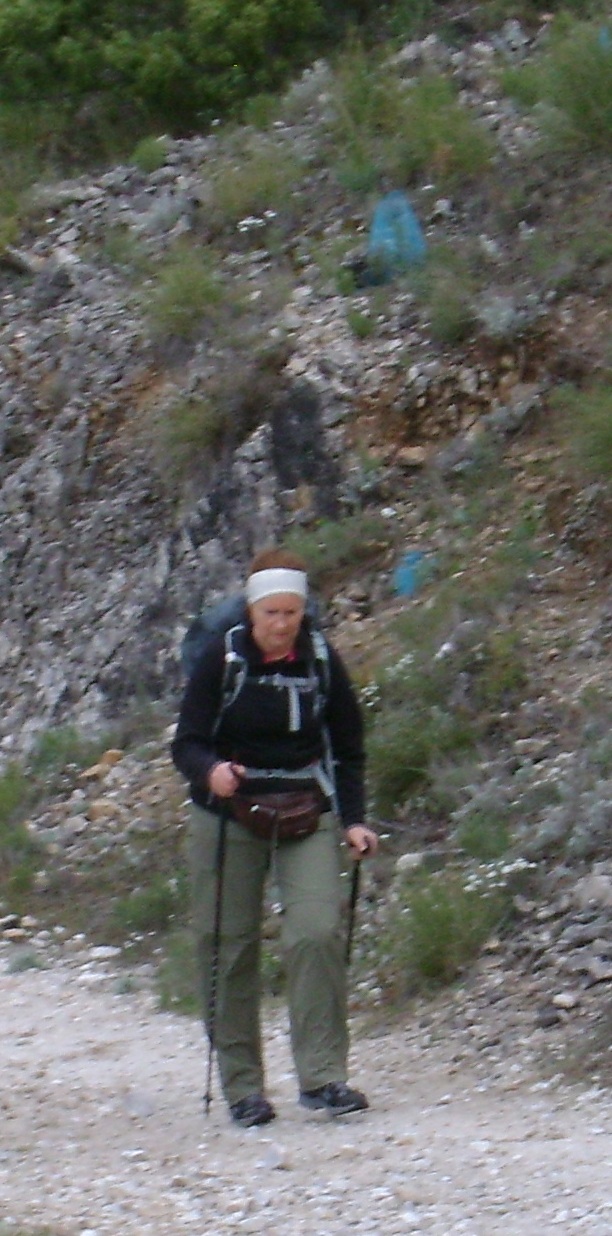 On Thursday I walked with John, a friend from the village, who offered to show me a new route. Lyn came along and we walked to the fabrica to meet up with John. We took a very steep incline up to the white track above, a short walk along the level track and then another climb, up the fire-break for a few metres, and behind a sharp peak before starting our descent, which eventually led to a point halfway along the track that I know as the ‘forest ride’. We trekked downhill until we met the track above the fabrica, at which point we parted company with John who retraced his steps back to his car, and Lyn and I went in the opposite direction to return home. This walk was virtually 20km, and quite hard going, but I was pleased that I felt fine at the end and that my blister was not causing too much discomfort.
