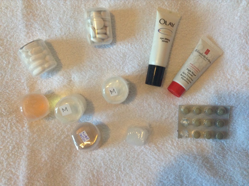 I spent Saturday morning doing the final assembly of everything I am taking with me. Again, I have been quite creative with packing. Weight is the ‘be all and end all’ of backpacking travel, and I have cut everything to a bare minimum. I have decanted moisturiser, serum, face wash and hair oil into the little plastic containers that come in hair dye kits in which the protective gloves are packed (David likes to keep his hair a certain shade of grey, so we have plenty of these containers!!). I have also used these to store a supply of painkillers and glucosamine tablets, and all of these, together with a couple of small tubes (eye serum and the ‘never to be without’ eight hour cream) fit into a cotton bud box.