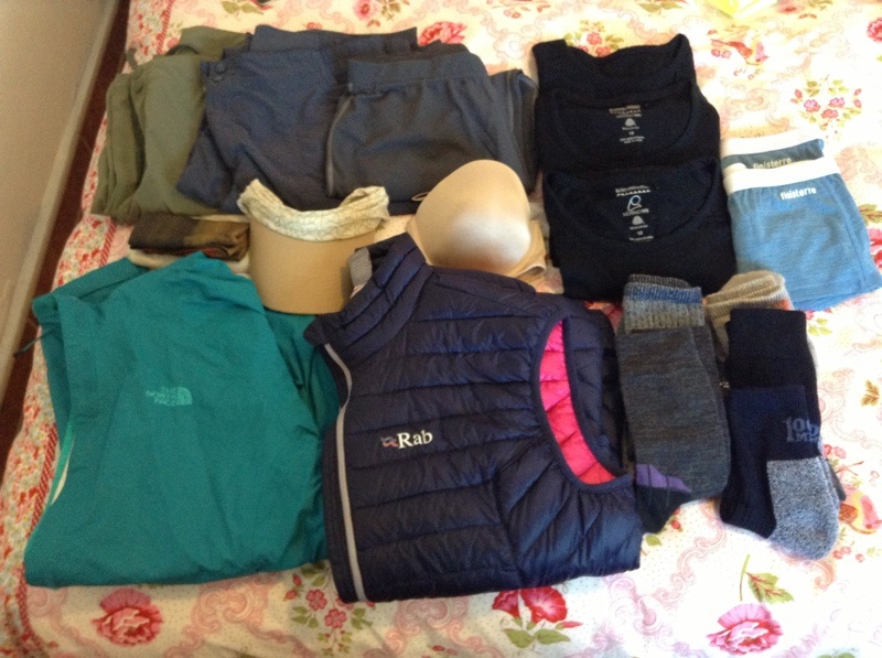 Extras packed at last minute: vest top, lightweight cargo pants