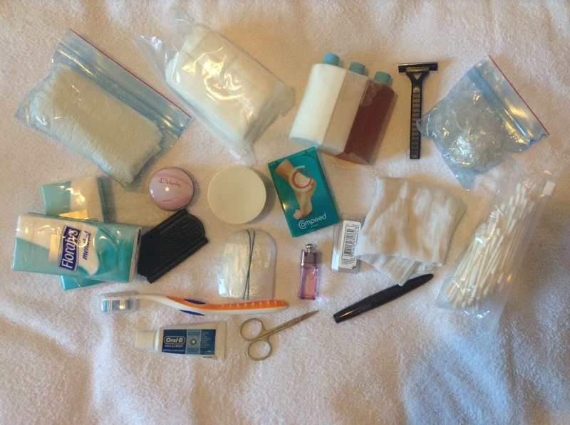 My only makeup is an eyeliner pencil and some lipstick which I may feel like putting on after a shower at the end of a long walk. My great luxury is my small 10x magnifying mirror with integral light and a pair of tweezers. All my other toiletries fit neatly into a sponge bag.