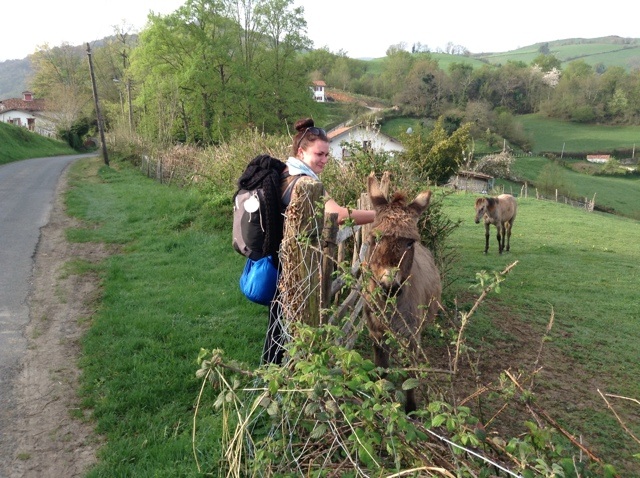 I had pre-arranged a taxi from Biarritz airport (which cost almost as much as my two flights put together) and watched eagerly as we passed by the French landscape. There were mountains on all sides and I wondered which one we would have to cross the next day. The houses are built in chalet style and the land is very green.