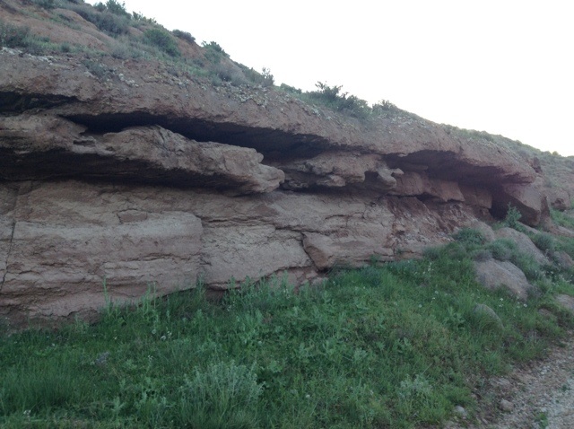 The snow capped mountains are back today, although we didn’t see them at all yesterday. The land in this area is very red and there are interesting rock formations.