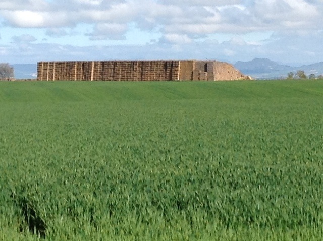 The landscape soon opens up to vast fields of grain, stretching as far as the eye can see, interspersed with vines.