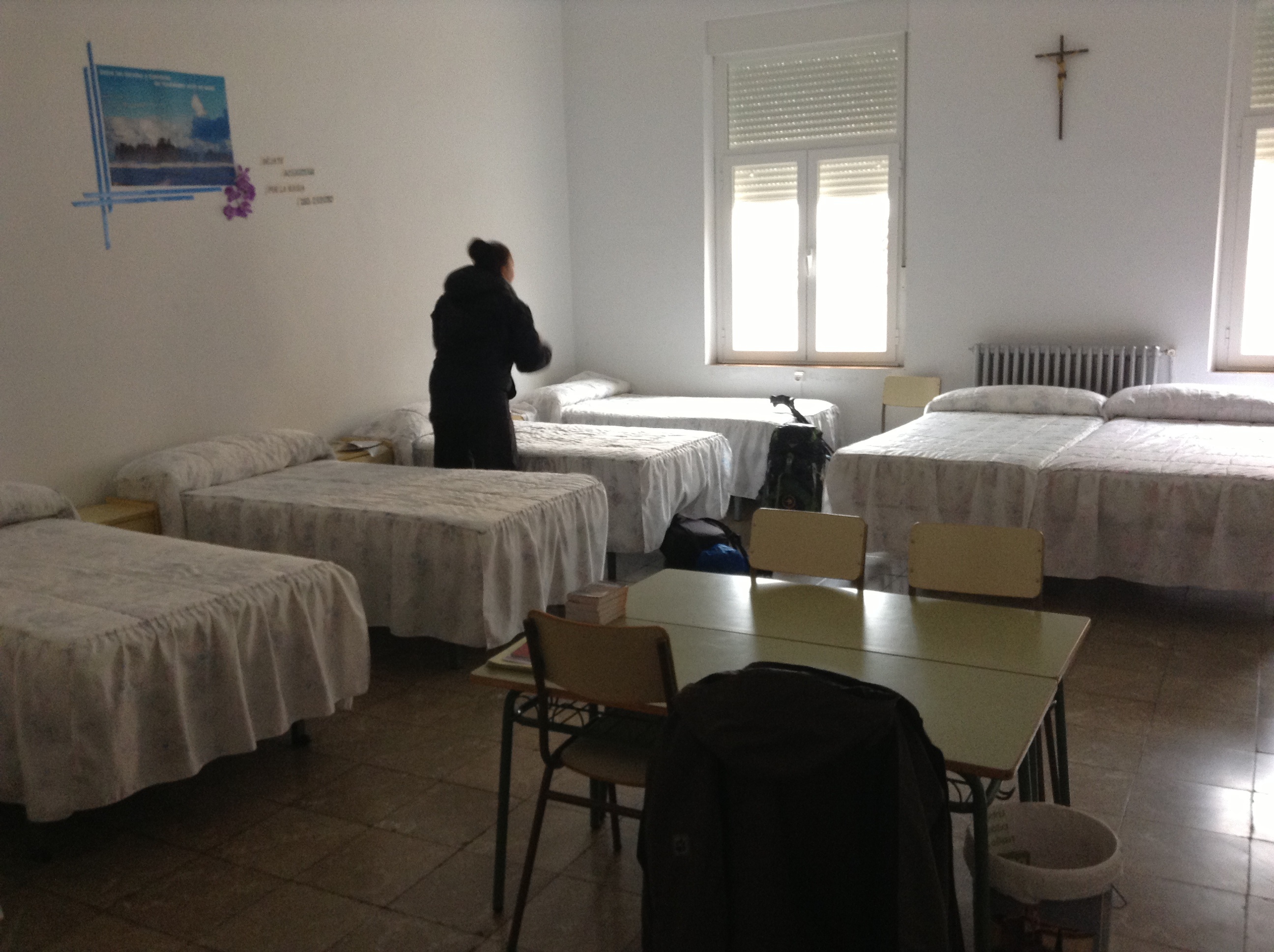 We are now staying at the albergue Espiritu Santo, run by nuns, with separate dormitories and facilities for men and women, and single beds for all – no bunks. Bliss!