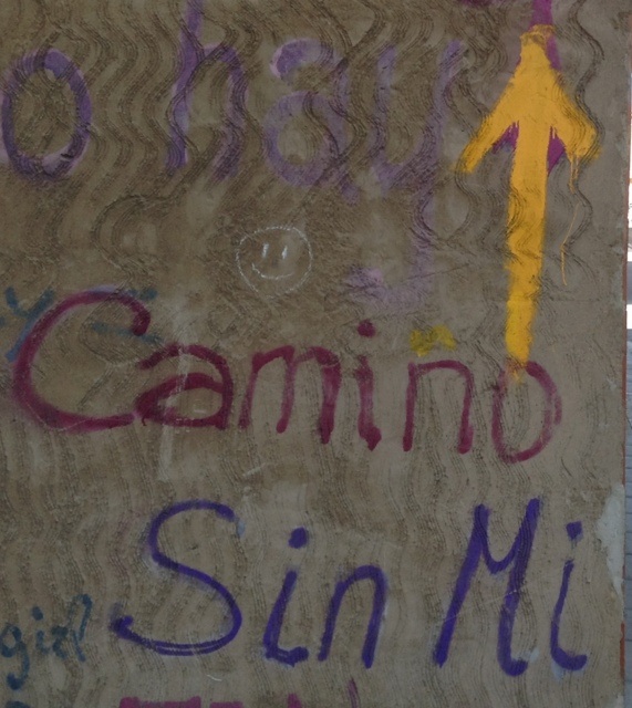 We reached the village of Virgen del Camino and found the albergue which is in a very peculiar position amongst institutional type buildings, but is sparkly clean with good facilities, lovely lounging area with library, adequate kitchen, and garden – all for six euros.