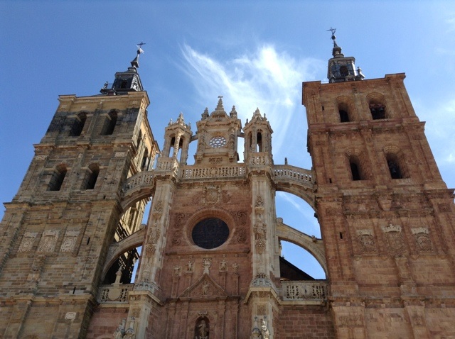 The approach wasn’t as tedious as into Burgos and Leon (and there weren’t any buses running from the track) but the city itself is very pretty with many interesting buildings, including this fabulous Palacio Episcopal designed by Gaudi.