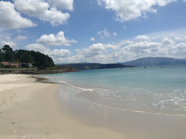 It must be every pilgrim’s duty to search for their own scallop shell as a reminder of reaching the end of the world. There are plenty of the domed shells, but almost none of the flat ones. I have managed to find two incomplete ones and one which is pristine, albeit very small. It will do for me, unless of course I find a bigger one, when I continue my stroll along the beach. I have collected a few additional pretty shiny shells for my grandson Mikey, but I doubt he will appreciate them.