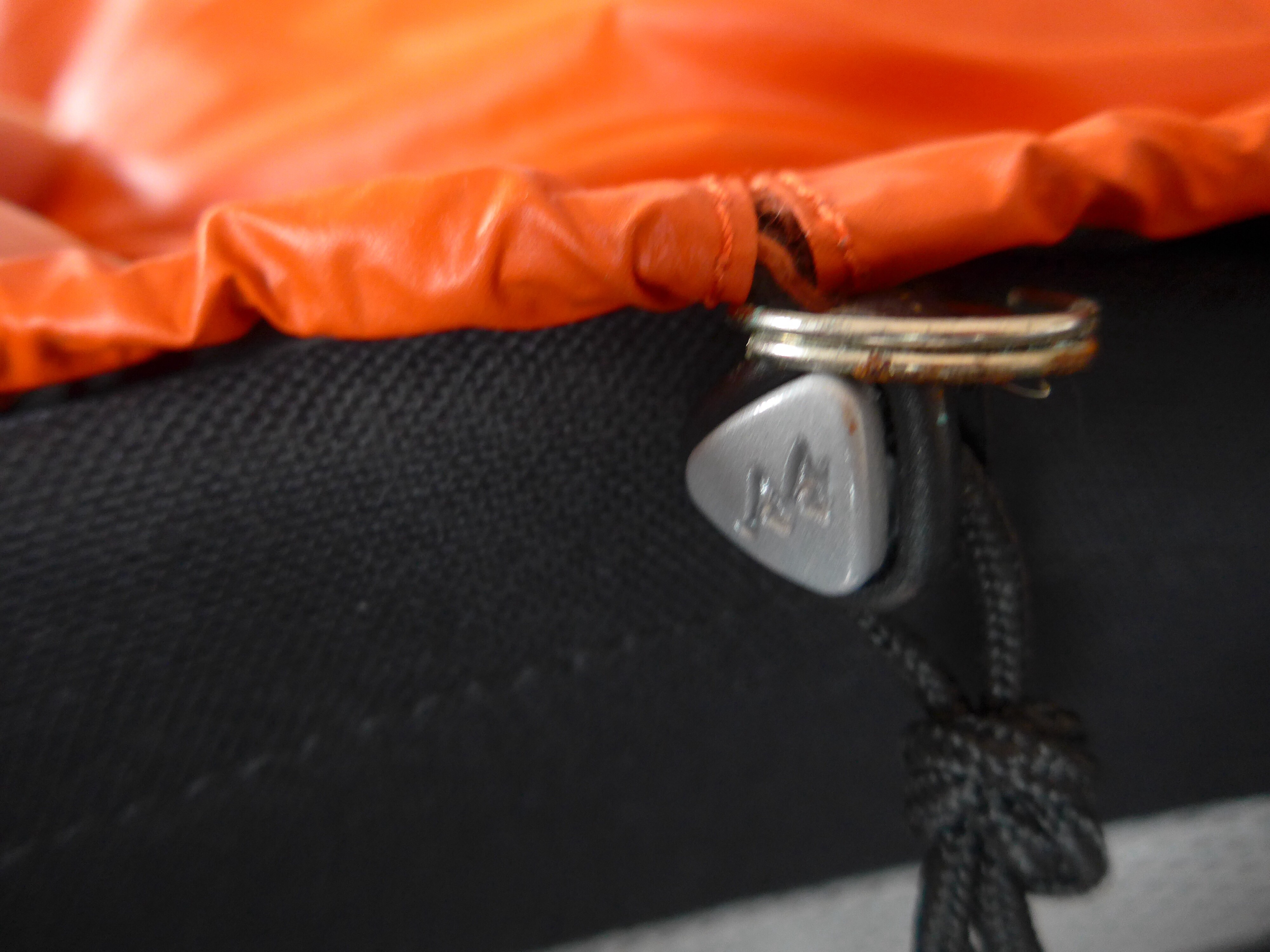 Next stage was to thread the draw string toggle of the cover through the split ring to anchor it at the bottom of the pack.