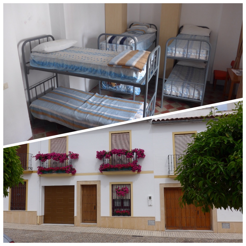 The arrows in the town were not very helpful and it took us a while to find the Ayuntamiento and office of the Policia Local who held the keys. Of course both were locked up for siesta. But I phoned the number for the police and was told they would arrive within fifteen minutes. So I settled down for an hour’s wait – and low and behold,they did actually turn up within the allotted time. Amazing! The key was handed over, directions given and albergue accommodation found. It is a lovely large house in a quiet square, with two rooms of bunks – 12 beds in all – a large meeting type room and a courtyard to hang washing. Really nice.