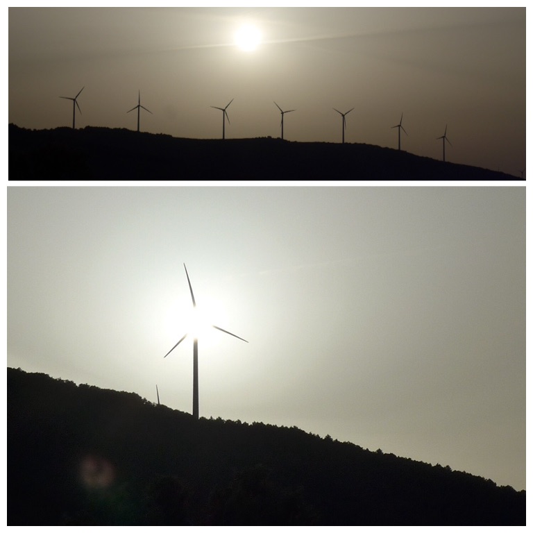 I set off around 07:00, first of all on a very quiet country road and then once again onto a series wide gravel tracks. There were some wind turbines high above and I waited for the sun to be directly behind one of the blades to take a photo for my great friend Lyn who works in the industry.