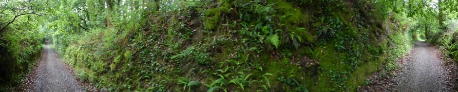 It rained lot during the night but it had momentarily cleared as I left this morning. However I didn’t trust it to stay that way so I donned my pack cover and rain jacket. It did in fact rain on and off for the whole journey, never particularly hard and at times the sun briefly showed its face, resulting in a rather indistinct rainbow. The way was again fairly evenly split between road and track, with perhaps slightly more soft than paved surface.