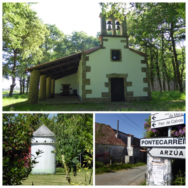 8.5 km from Boimorto I stopped for a short rest and sat on a shady stone bench at the pretty Capella de Mota. Some way further, during a spell of around 2.5 km on a gravel track a deer leapt from the field on one side to the woods on the other. I quickly readied my camera in the hope that others might follow, but alas it was alone and I had missed a great photo opportunity.