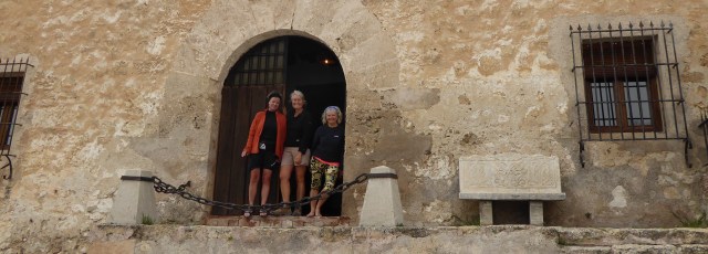 We finally reach the hill-top village of Moclin, perched at over 1,000 metres and I reckon we have just climbed 500 m over 3 km and then find that our accommodation is at the very top of this very high village. We gird our loins for the final ascent and are met by a very pleasant young woman who shows us to our home for the night. And what a home! A 16th century property with heavy beamed ceilings, all manner of artefacts, fabulous decoration and comfortable furniture. A huge kitchen, lounge with corner chimney, beds for eight and a luxurious bathroom. We paid the ridiculously small amount of 70 euros for this, more or less 12 euros per person. Pósito de Moclin reserved via Booking.com – such a lovely experience for the price of an albergue. Result!