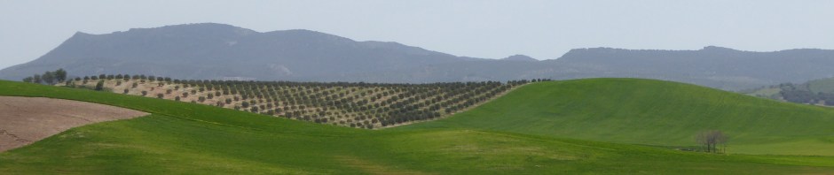 Today’s stage began with a very steep loose gravel track down out of the village, with olive trees on either side and into the distance as far as the eye could see. Then came some rolling fields of rich green cereal crops.