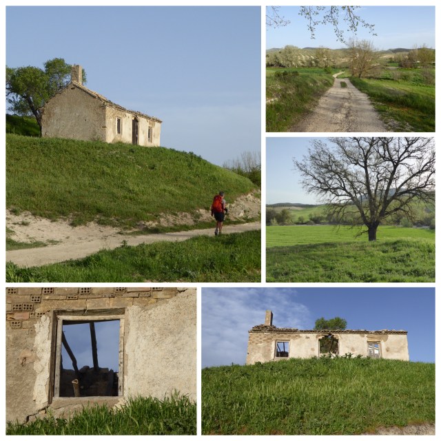 But 1.5 km later we were back on track until we reached the small town of Ermita Nueva at 13 km. Nina and I had walked ahead whilst the others stopped off for breakfast in the village where we started. We were expecting the bar to be open for a snack and a drink at this half-way village, but were told it didn’t open until mid day. Meanwhile the bread van stopped and beeped its horn to alert any customers, so I went across and bought a delicious sweet roll stuffed with walnuts and sultanas. Luckily there was a small supermarket in the town and I bought some supplies to see us on our way. I put my rather handsome tomato on a bench whilst I organised my pack and must have knocked it off, and watched in amusement as it rolled down the hill, gathering speed as it went. I finally caught up with it and was pleased to see that it survived unscathed, if a bit dusty. But a hardy pilgrim can’t worry about a bit of dust.