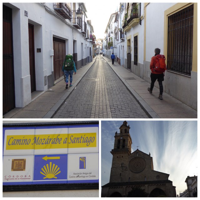 The signage out of Córdoba is by means of high level fairly discrete plaques, but they were frequent and adequate. We walk around 4 km before leaving the city limits, and it is much more pleasant leaving that it was arriving. We are almost immediately in beautiful countryside and the wild flowers are spotted with bubbles of morning dew – the first I have seen on this camino and a perfect opportunity for playing with my camera.