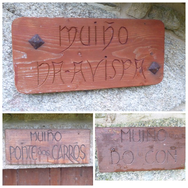 We met up at 6.5 km when we stop at Ribadumia for a drink. We were previously walking along the Rio Armenteira, but have now upgraded to the wide and fast flowing Rio Umia, strolling between the river and vineyards. At some points along the river frogs compete with the birds to see who can sing loudest.