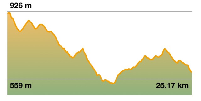 Castuera to Magacela 35 km (there are a couple of albergues between these towns at 8 km and 20 km). Comfortable track all the way, wide open pastureland, no shade. Archaeological site at 27 km that can be visited on weekdays. Magacela sits atop a hill and can been seen from a great distance. We stayed at Casa Rural el Cercón de Candelo, telephone Isabel 651 670 413 situated before reaching the hill, well signed from the camino. Highly recommended, beautiful peaceful courtyard, two bedrooms with twin beds, and bathroom. Cost 15 euros including breakfast. Dinner can be provided for 10 euros. The spike at the end of the elevation profile above shows where we unnecessarily climbed the hill and back down again to find the albergue.