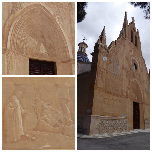 At the entrance to Caudete we find the Santuario de Nuestra Señora de Gracía. The facade appears carved of stone, but on closer inspection we discover it is entirely flat, all a trick of the eye, a clever trompe l’oeil.