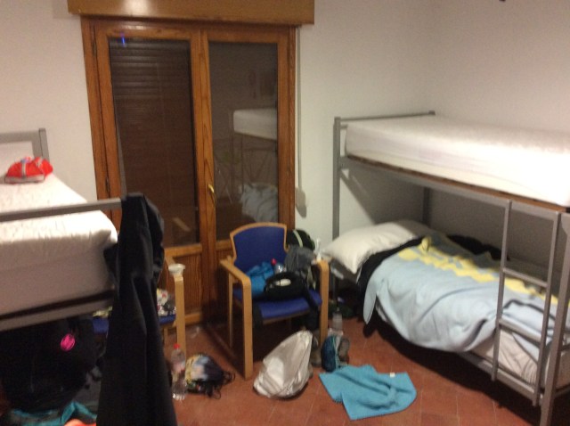 I contact Javier who runs the albergue at Caudete mid morning to warn him of our arrival, and he requests that we ring again when we reach town. The albergue is situated at the very top of town, adjacent to Santa Ana church. Ring Javier, ideally the day before arrival, 634307571. It is a stone building and on this cold day, it is, unsurprisingly, cold. But there is plentiful hot water, cooking facilities, two bunks and an overspill of a triple bunk in an adjacent room. Sheet, pillowcase and blankets are available. 5 euros.