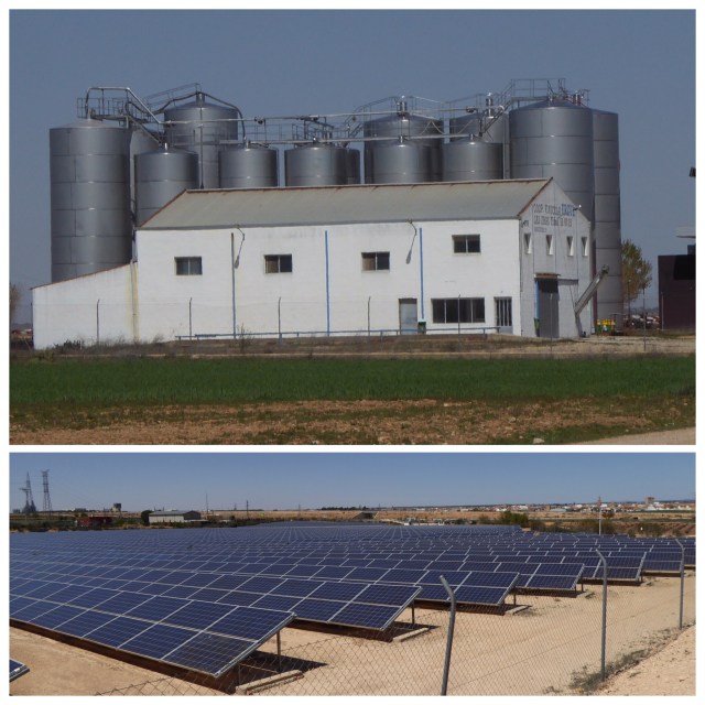 We exit the canyon on a narrow ledge around the rim of this extraordinary basin and soon find ourselves in the village of Las Eras, and then back onto the monotonous wide, straight gravel tracks running between fields of cereals and vines. So many vines! Ancient knarled vines , newly planted vines, and everything in between. So it shouldn’t have surprised us when we see, in the middle of nowhere, a huge building with massive vats alongside and discover that it is a wine cooperative. But what did surprise us was that alongside was a go kart track and assault course and a gaggle of guys obviously out on a stag weekend acting in a very bloke-ish manner.