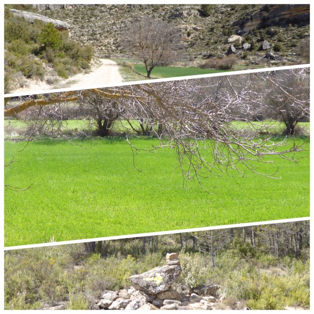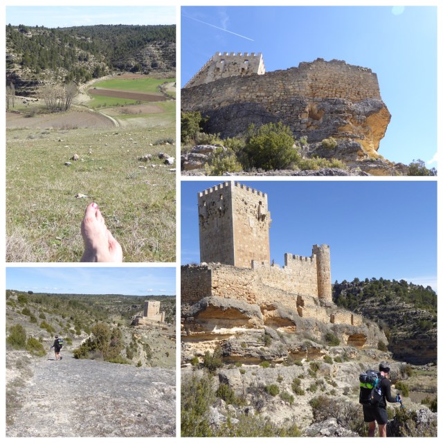 At 16 km we arrived at the village of Paracuellos. There is apparently a bar in town but we didn’t go out of our way to find it, preferring to take a break sitting on the grass that surrounds the impressive castle and overlooks the gorge below.  We could have stayed there indefinitely – it was warm and comfortable and the view was magnificent, but we still had 20 km to cover in the increasing heat and so needed to get on our way.