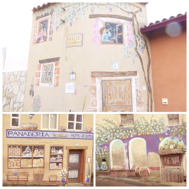 We pass through another village, Moranchel, on the way. Our flagging, soggy, cold spirits are lifted by the sight of enchanting street art. We don’t need much to make us happy. But a little sunshine wouldn’t go amiss!