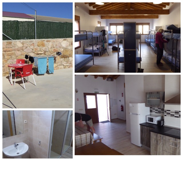 The bar/restaurant/hostal La Muralla has built an albergue a few metres down the road. It is one of the nicest albergues I have had the pleasure to stay in. 18 or 20 places in bunks, paper sheets, cosy duvets and pillows.  Really well thought out, separate bathrooms each with two basins, two showers and a loo, very good kitchen. Plenty of space for washing to dry in the sunny courtyard. 15 euros, 975 345 053. There is no shop open on a Sunday so we can’t make use of the kitchen (not actually sure if there is a shop in the village), but there is plenty of equipment, a ceramic hob, microwave and toaster. We ate in the restaurant and I took leftover salad for the next day.
