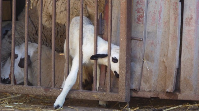 After around 1.5 km on the road we drop down on a very steep concrete track towards our final destination.  As we pass a farm yard we hear the plaintiff bleating on a baby lamb. We look over the gate and see a newborn with its head stuck between railings.  The gate is too high for us to climb and we are relieved when a car approaches and we flag it down. The guy told us that the owner was called Jesús and we should try to get a message to him at the bar when we arrived. There wasn’t anything else we could do, but duly reported it at the bar and hope that the poor creature was released from its torture sooner rather than later.