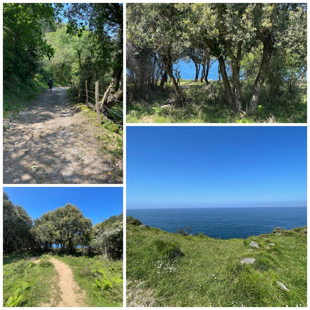 We did a bit of shopping for lunch in Castro Urdiales, which distance is included in today’s km’s. And then had to do an extra loop because we missed a turn. There followed a variety of tracks – some on quiet country road, and plenty on beautiful countryside track and cliff top pastures.