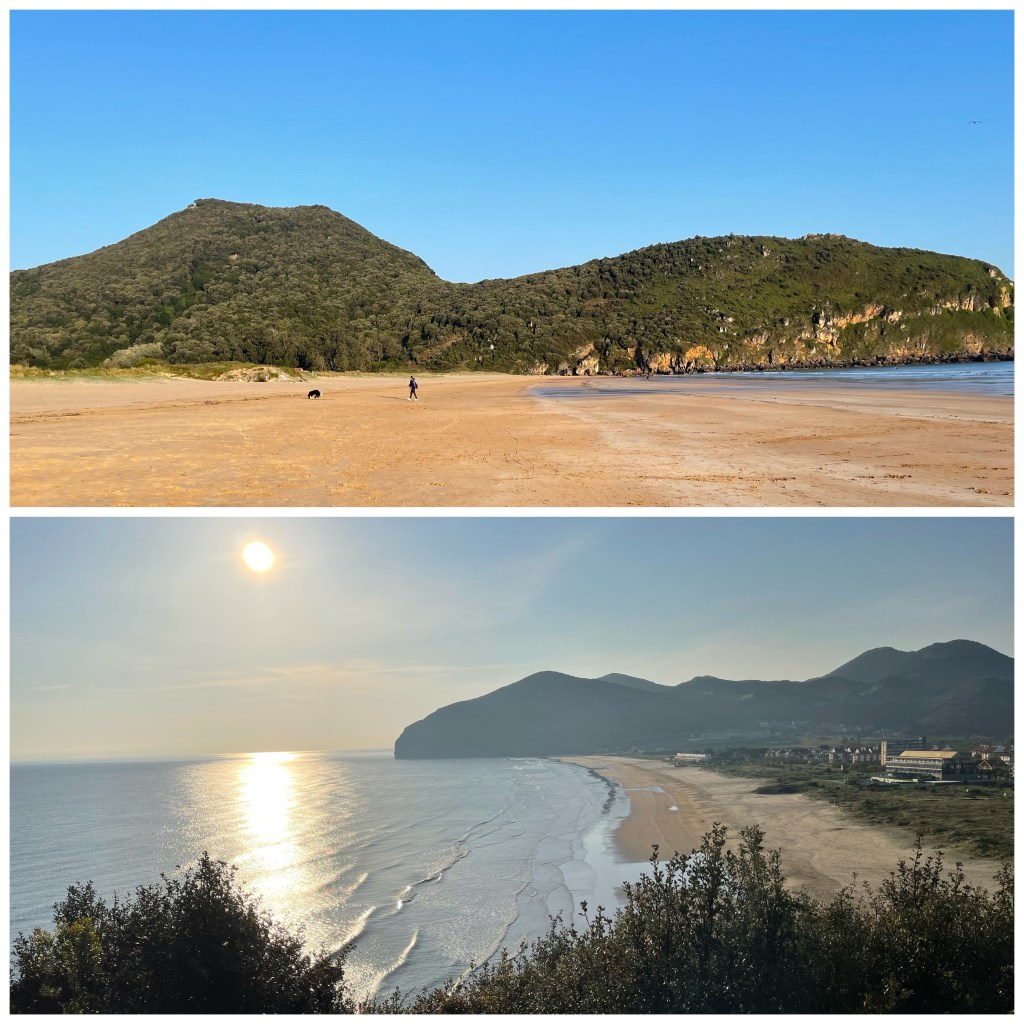 Not many photos today apart from the glorious first 8 km along the beach and over the headland. After that the scenery was very lovely – rolling green and pleasant hillsides, very lush. Of course agricultural scenery is accompanied by agricultural smells – and there have been plenty – but they are probably a little less offensive than the fishy smells in Laredo and Santoña.