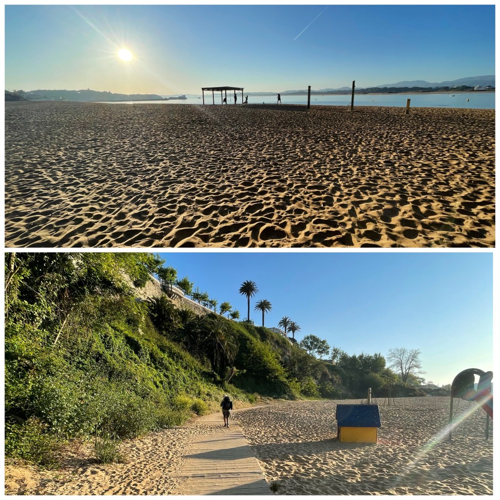 So today we start with the coastal option from Santander. The track that I have downloaded directs us along a busy road mostly right next to the coastline. However we opted to take a slightly more scenic route for a few hundred metres but it does involve walking on the beach and climbing up some steep steps to get back to the road. Being Monday morning at rush-hour the road is quite busy