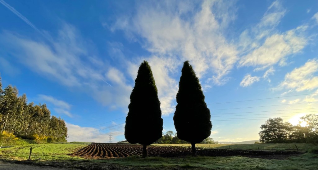 I pass new plantings for a eucalyptus plantation, currently saplings only about 5 feet tall, but in no time at all they will rise to a great height to obscure all the views and, from what I am told, will take all the nourishment from the soil without putting anything back