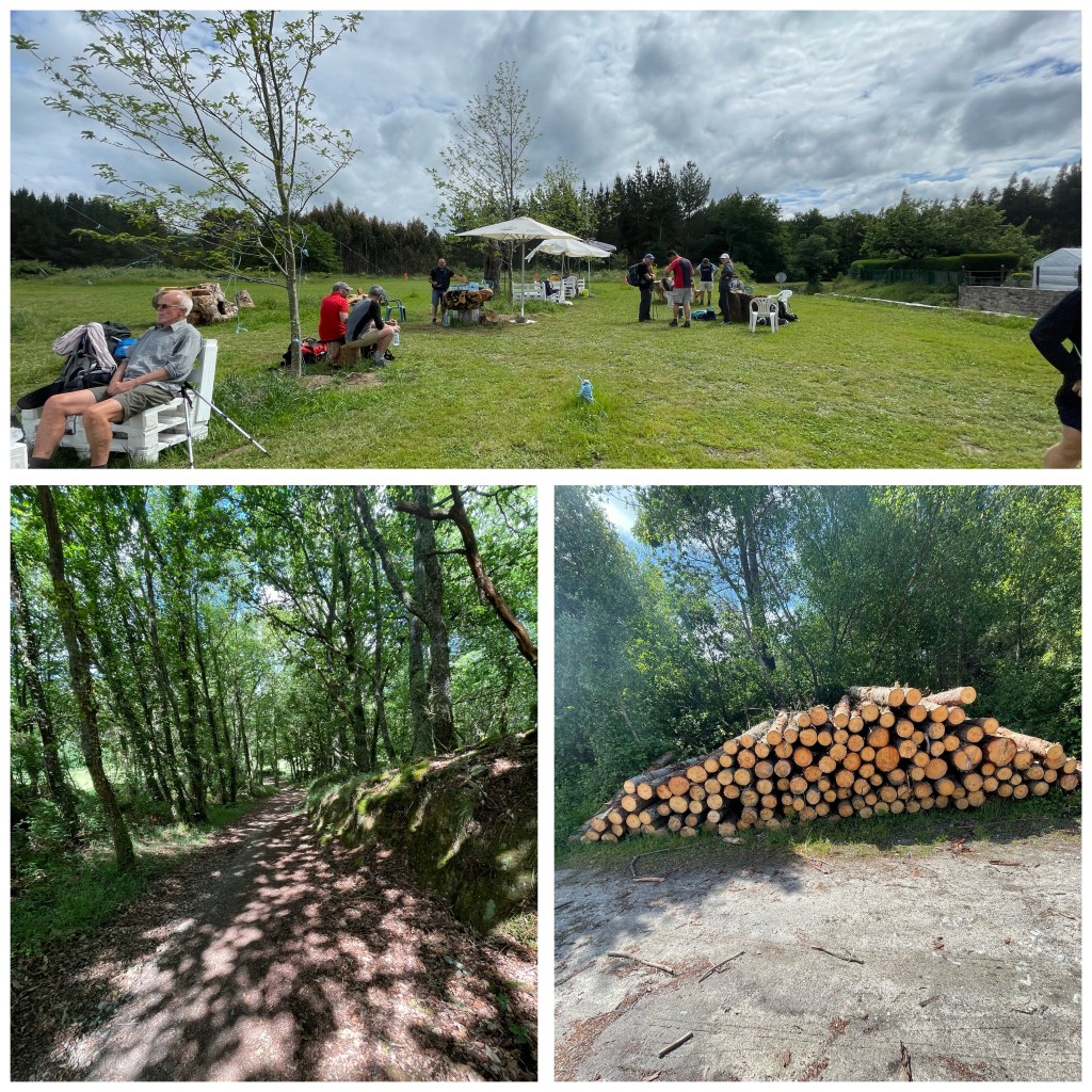 I’m surprised to come across a delightful stone built albergue called Puciña Muñiz with a bar/cafe in a tiny village 15 km from O Cadavo – half way point for me. My knee is already making walking painful and a few kms further on I am pleased to see that an enterprising man has set up a donativo melon station in a field at the side of the road. He is offering melon to all who wish to stop – and there are plenty!