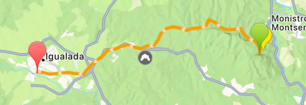 It was then a bit of a drudge for the rest of the way, particularly when walking through an endless stretch of industrial buildings alongside a busy road, which eventually merged with the outskirts of Igualada, a large town where we are staying tonight. There is albergue accommodation within the tourist information office building. It is rather expensive at €19.95 per person but it is all very new and impressive with extensive facilities and in the heart of the old town. We’re not complaining! It is advised to reserve in advance, although we seem to be the only residents here today. Telephone +34 935 164 016, Placa de la Creu, 18.