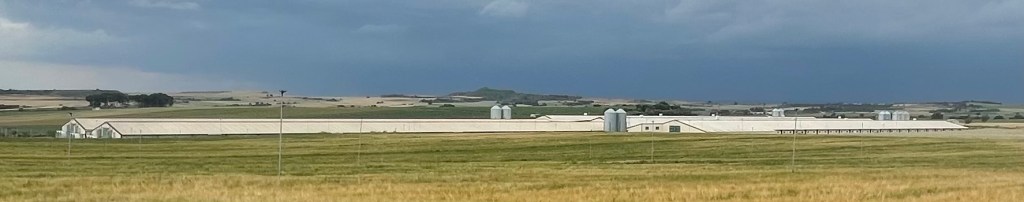 I suspect this huge unit is full of sad pigs, although I can’t know that for sure. But there is a very distinguishable stench that comes out of these units which I recognise from the first time we saw one when we could actually tell there were pigs inside from their awful cries. There have been many of these units along the way, mostly not as modern looking as this one, but all with the same awful smell. The cows I passed this morning (and there were plenty of them corralled into a pen) didn’t leave any lingering smell at all they could see the light of day.