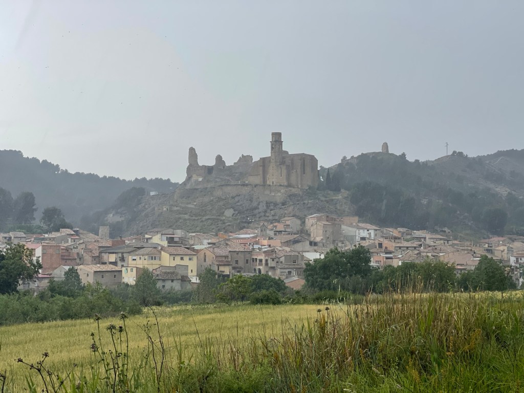 At Castelló de Farfanya we found shelter under some stone arches and ate supplies from our packs. The rain stopped for a while and we took to the road.