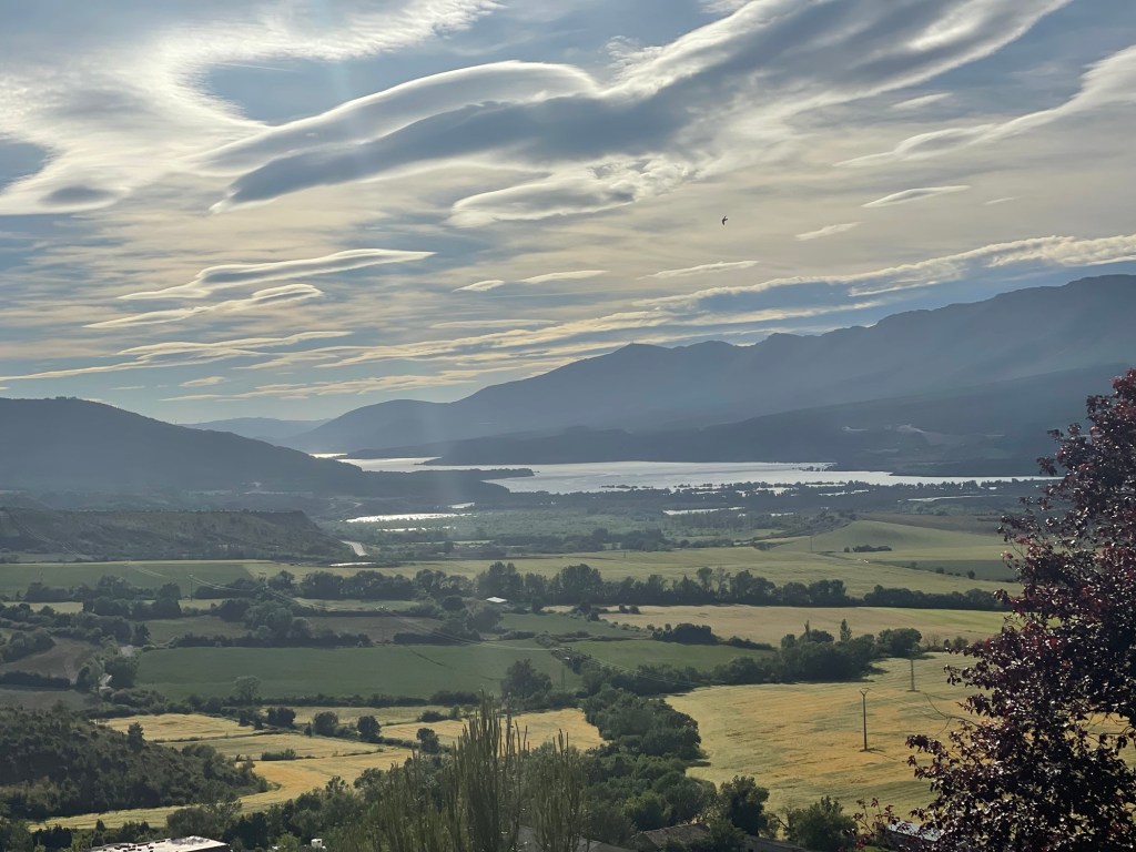 After this it’s a bit of a slog for the last few kilometres. Lots of inclines with a few descents as we climb and climb to the stage end at the top of a hill. Artieda is another very pretty stone village with amazing views to the Pyrenees and over the Embalse de Yesa (a huge reservoir).