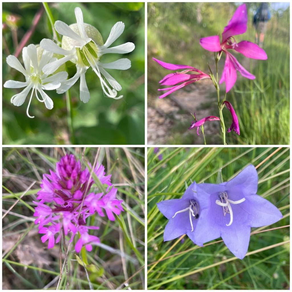 There’s a wonderful variety of wildflowers on this little track – including many pyramid orchids. I’ve seen irises for the first time and campanulas which I don’t think I’ve ever seen on the camino before, plus all the usual suspects. But my very favourite wildflower on this camino has been the tuberous-rooted meadow rue – a rather ugly name for a beautiful delicate flower. There are also signs of an abundance of cowslips which bloomed a few weeks ago. When I’m walking alone, which is often, I tend to find myself greeting the flowers as I would a young girl in her fanciest frock, complimenting them on their beauty.
