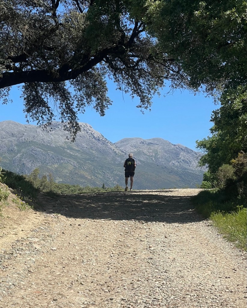 As I huff and puff struggling up a very steep section of rocky incline I suddenly hear steps behind me and a very long legged energetic Spanish man came up behind chatted for a moment and was out of sight within a flash.