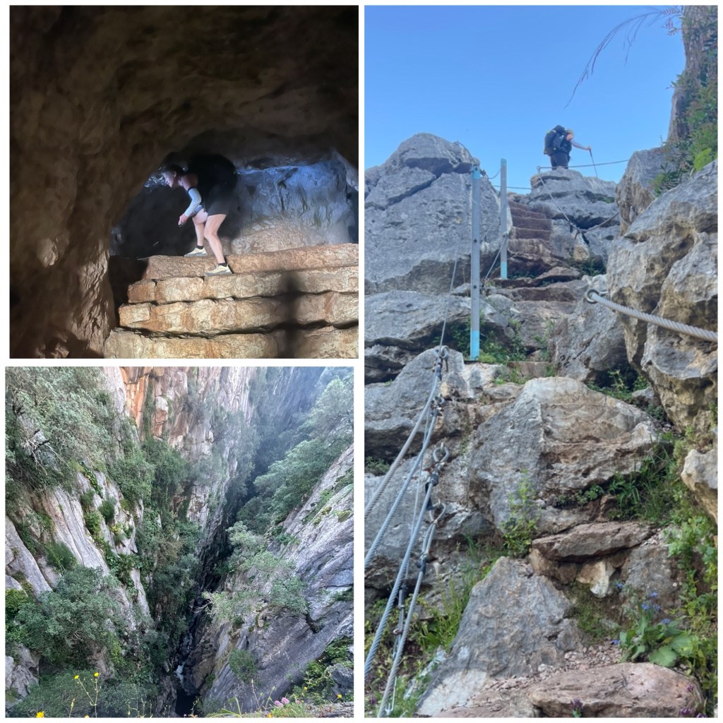 And then we climb up some precarious steep rock steps on the other side. Luckily there are cables running up each side to assist with hauling yourself up. I emit considerable old lady noises heaving myself up the mountainside.
