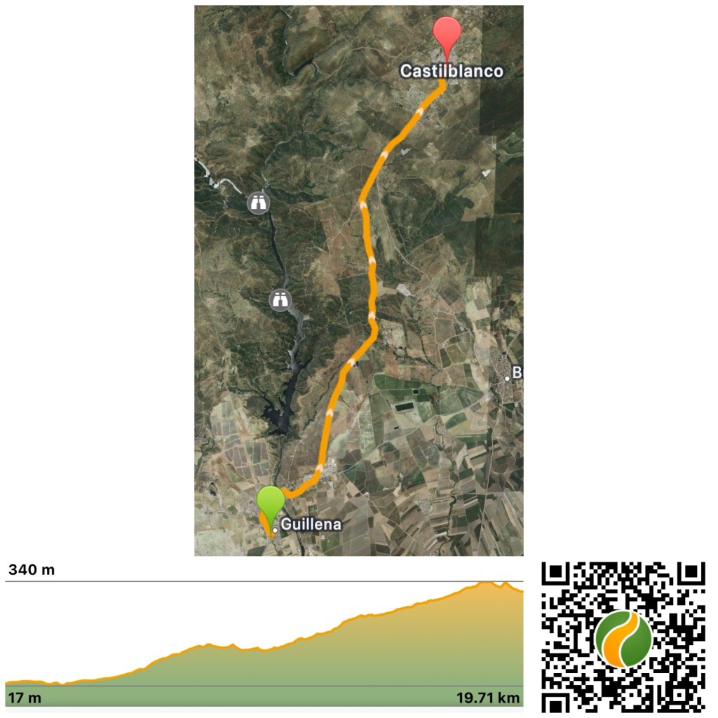 Albergue whinge – we stayed at the Albergue Luz del Camino in Guillena last night. The host was very welcoming but the albergue left a lot to be desired in my opinion. We were allocated a room with three bunk beds. We were first in so both chose bottom bunks. A quilt was supplied but I definitely didn’t want it touching my skin so used my silk liner for the first time on this camino.