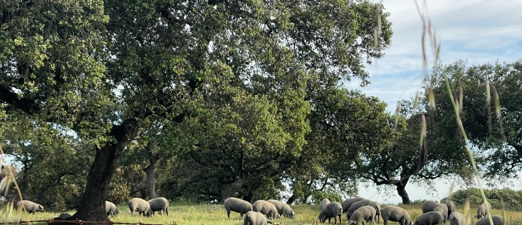 There’s more livestock on the route today, lots of cows and I’ve just seen my first field of black pigs for many stages.