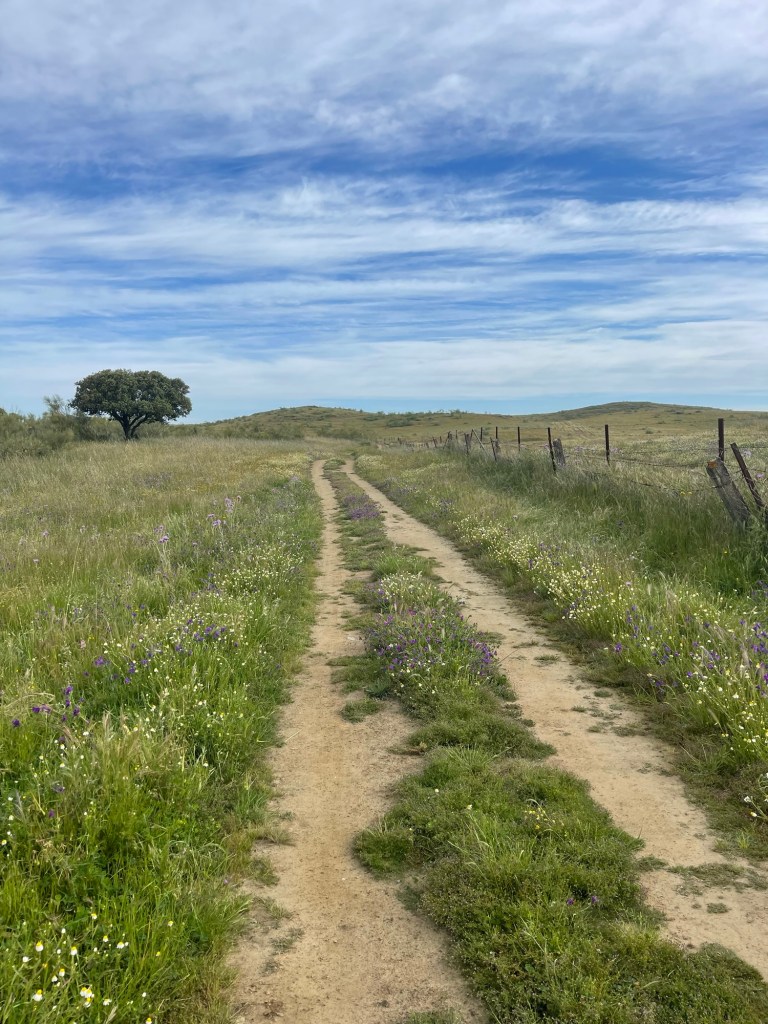 The walk is not going in my favour this morning. When I go to look at my Wikiloc recording to see how far this diversion has taken me, I realise I haven’t turned it on. So I wait until I get back to the point of my error and turn it on. maps.me tells me that at this point I am 3 km from Monesterio. I reckon that I’ve walked an additional 1.5 km on my little excursion. Oh well, as a camino friend of mine wrote when she had to return to her Hostal to retrieve her hat “Hey, we’re here to walk”!