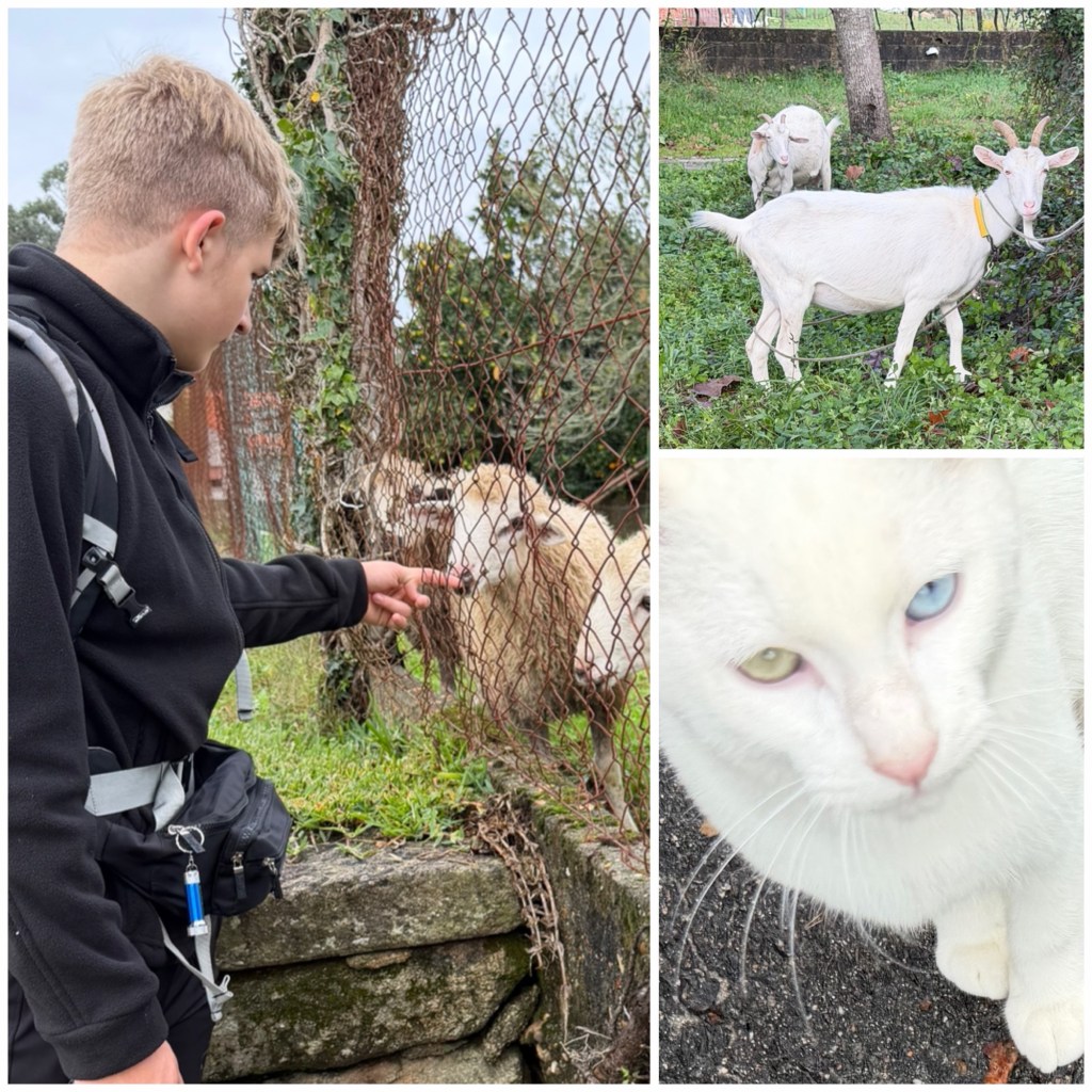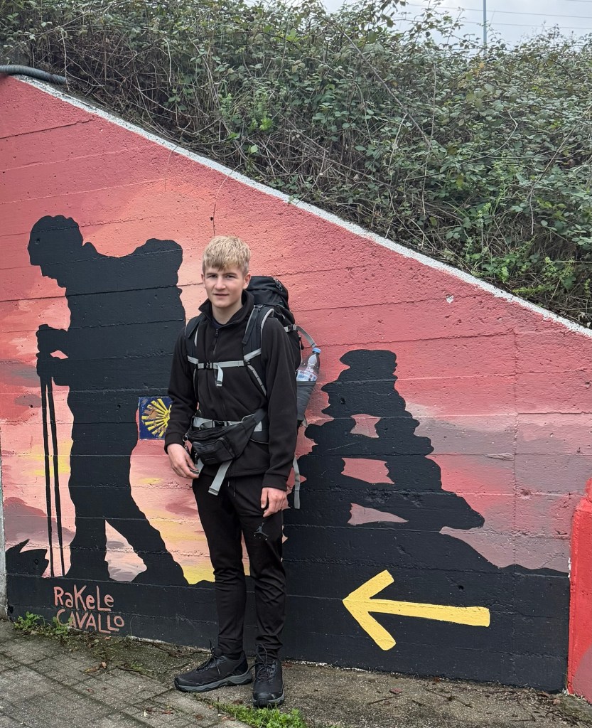 There are lots of pilgrims walking at the moment – many with just day packs so presumably with some sort of tour company. Or maybe they’re walking just a stage at a time. We met a group of Canadians, saw our Japanese friend a few times, took photos for a Brazilian peregrina. Mikey is very comfortable communicating with strangers – and does himself (and me) proud with his general demeanour.