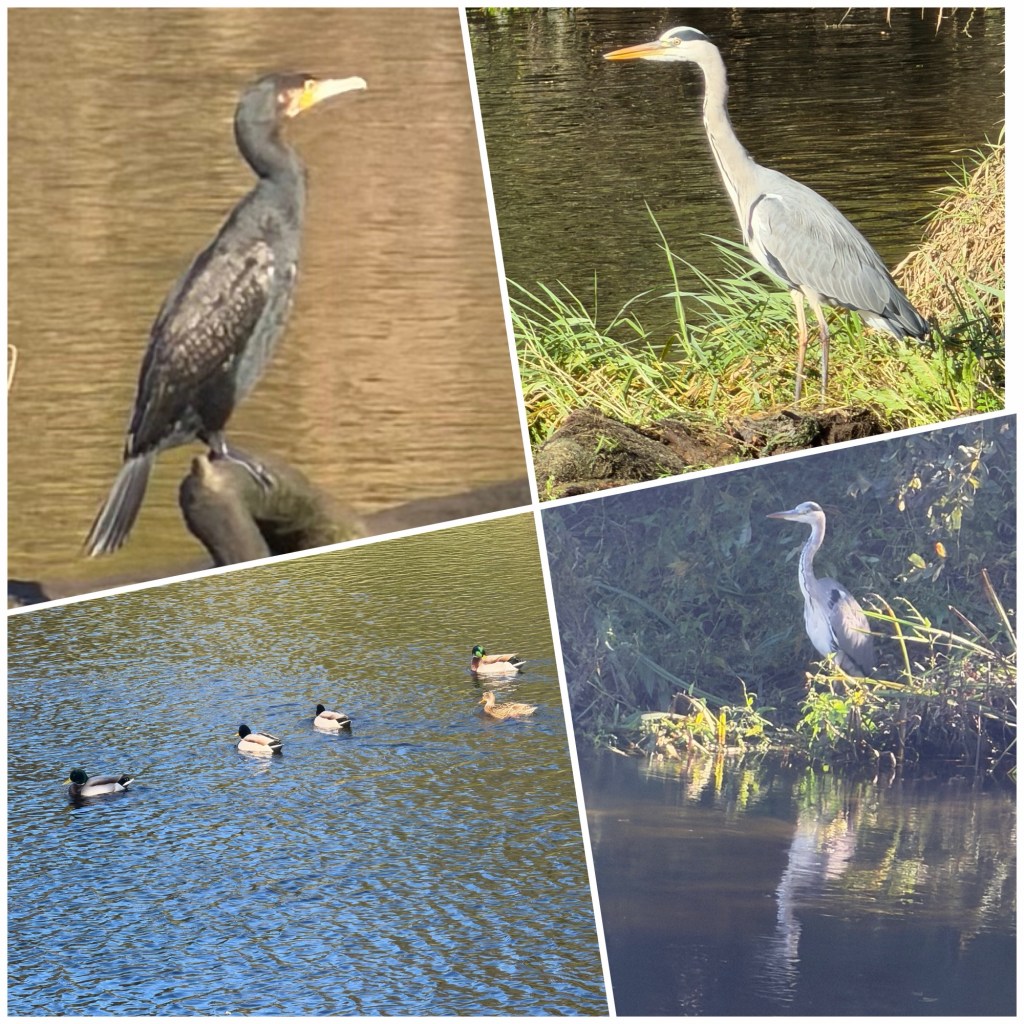 Mikey takes advantage of every opportunity to climb up, crawl under or shimmy down any and every obstacle along the way. We stop to take a photo of a cormorant and he offers to scoot down the river bank to get a better view.  The next photo opportunity is a heron, and then some ducks and another heron.