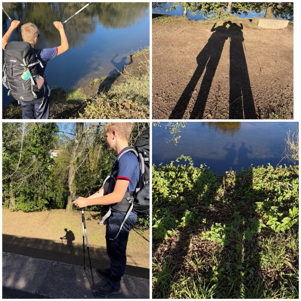 There’s a lovely resting spot with a café at 4 km where we treat ourselves to hot chocolate each and a really squishy brownie to share. And we discover we’re not the last pilgrims on the trail as a few others turn up after we’ve arrived.