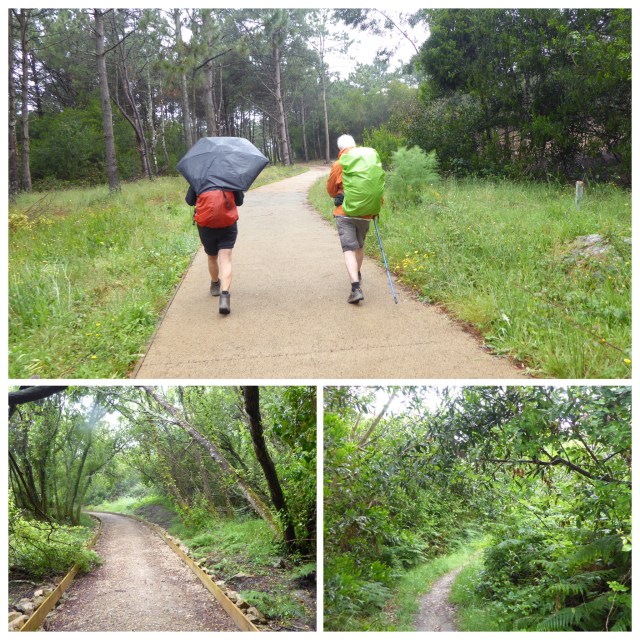 At around 3 km we are walking on a quiet road, but there are many tight bends. Walking in this type of road in very limited visibility is very intimidating. I am glad my jacket is cream coloured, my poles are bound with fluorescent tape and by pack cover is orange. If anyone knocked me down it would be intentional! My fellow pilgrims are wearing very dark colours and as I am bringing up the rear, I feel they are putting themselves at risk in these conditions.