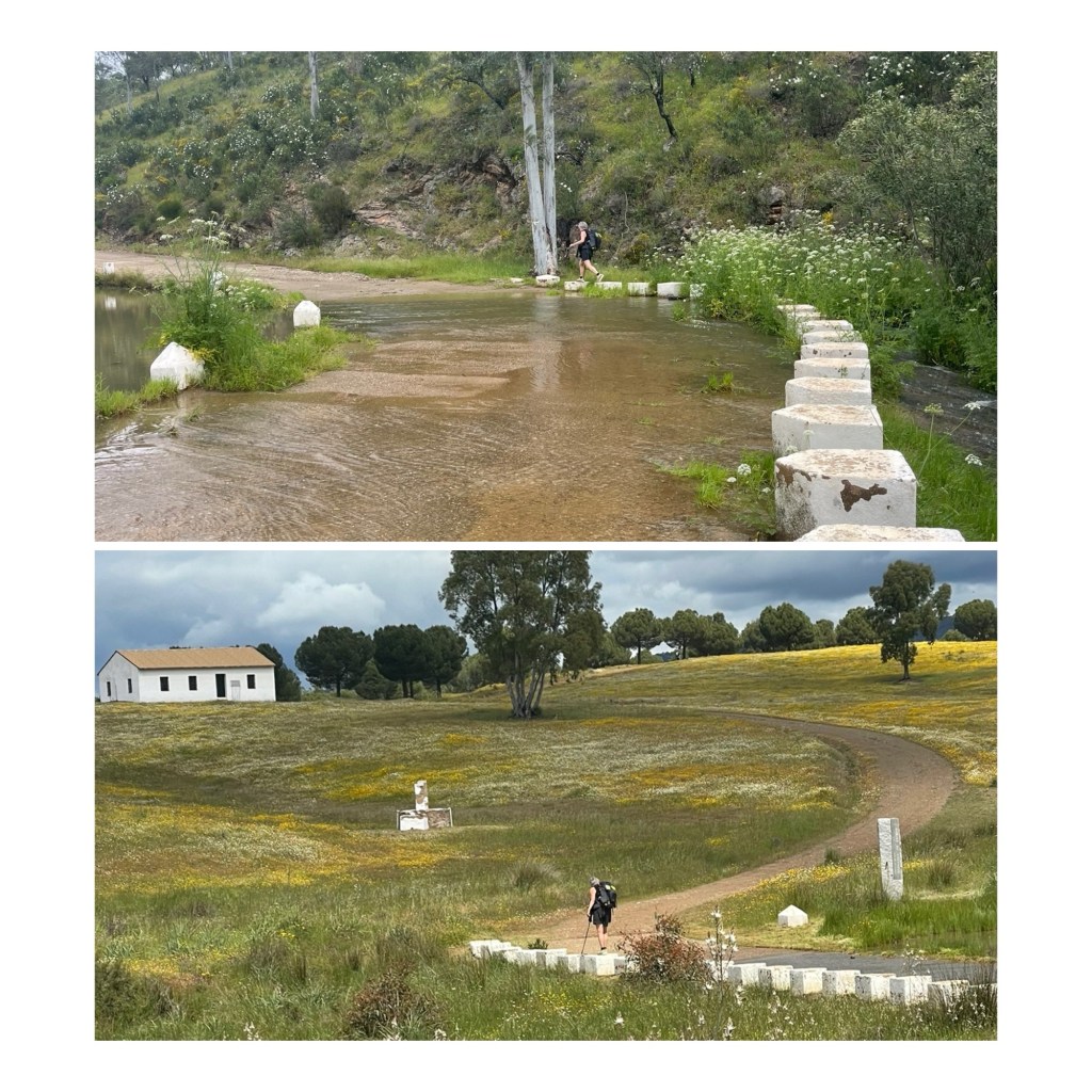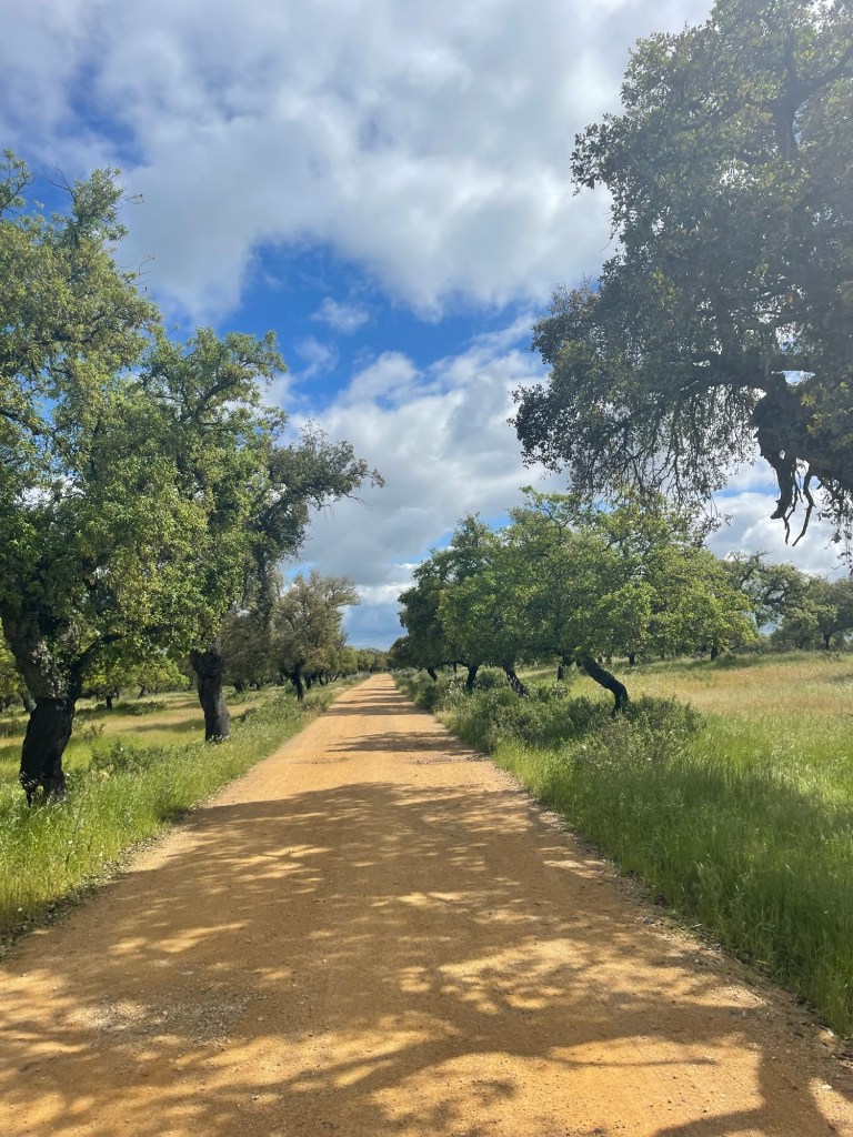 The stunning walk through the cork oaks and the cistus comes to an end at 21.5 km. It’s been absolutely beautiful and it’s made up for every sticky, sloppy, clingy bit of mud that we’ve put up with in recent days
