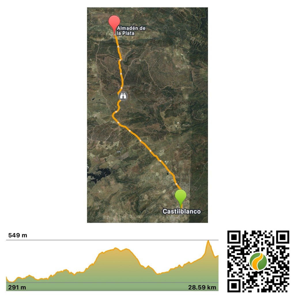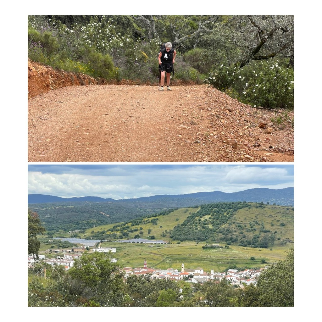 Well we certainly pay for all that beauty and that gentle descent. I see a looming hill. I say to Nina that it can’t possibly be track. It’s just too steep. It must be a fire break. But guess who was wrong – it was ridiculous but of course we made it to the top plodding ever upwards – the steepest incline was 100 m over a distance of 700 m. And of course there was an equally steep descent into Almadén de la Plata.